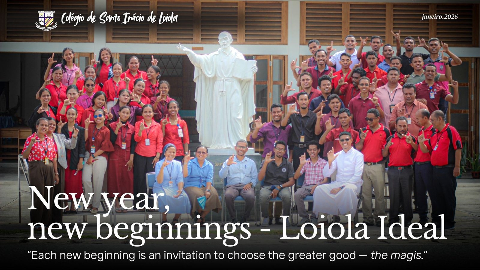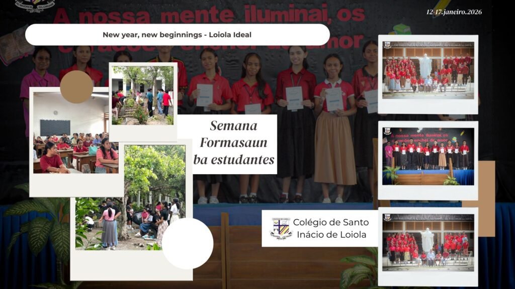 Loiola  hahu tinan foun 2026 ho tema New Year, New Beginnings – Loiola Ideal. Colégio Loiola hala’o formasaun ba professores sira hahu husi loron 5 to loron 10 fulan janeiro tinan 2026. Iha ne’ebé Diretór do Colégio Pe. Calisto Seco Colo, SJ. deskreve objetivo sira husi tema ne’ebé iha atu tulun Loiola hodi sai Ideal, O ambiente escolar ideal na Loiola “é aquele em que alunos, professores e funcionários se sentem seguros, respeitados e inspirados. É uma comunidade baseada nos valores inacianos, marcada pela disciplina, colaboração e um desejo comum de crescer na vida academica, espiritual e pessoal” hateten Pe. Calisto, SJ. iha foramsaun loron primeiro.