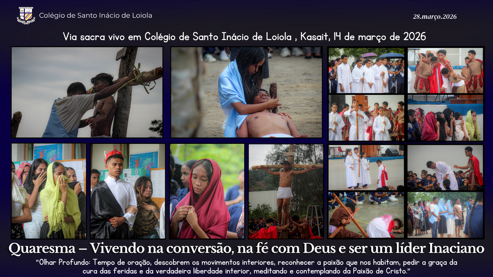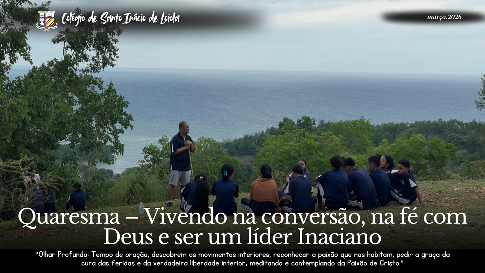 A Quaresma é um tempo de graça que nos convida à conversão, ao aprofundamento da fé e ao crescimento na liderança inspirada pela espiritualidade inaciana. É um tempo de oração e de olhar profundo para o interior, para reconhecer os movimentos do coração, descobrir as paixões que habitam em nós e pedir a graça da cura das nossas feridas e da verdadeira liberdade interior. Neste caminho espiritual, somos convidados a meditar e contemplar a Paixão de Cristo, permitindo que o seu amor transforme a nossa vida.